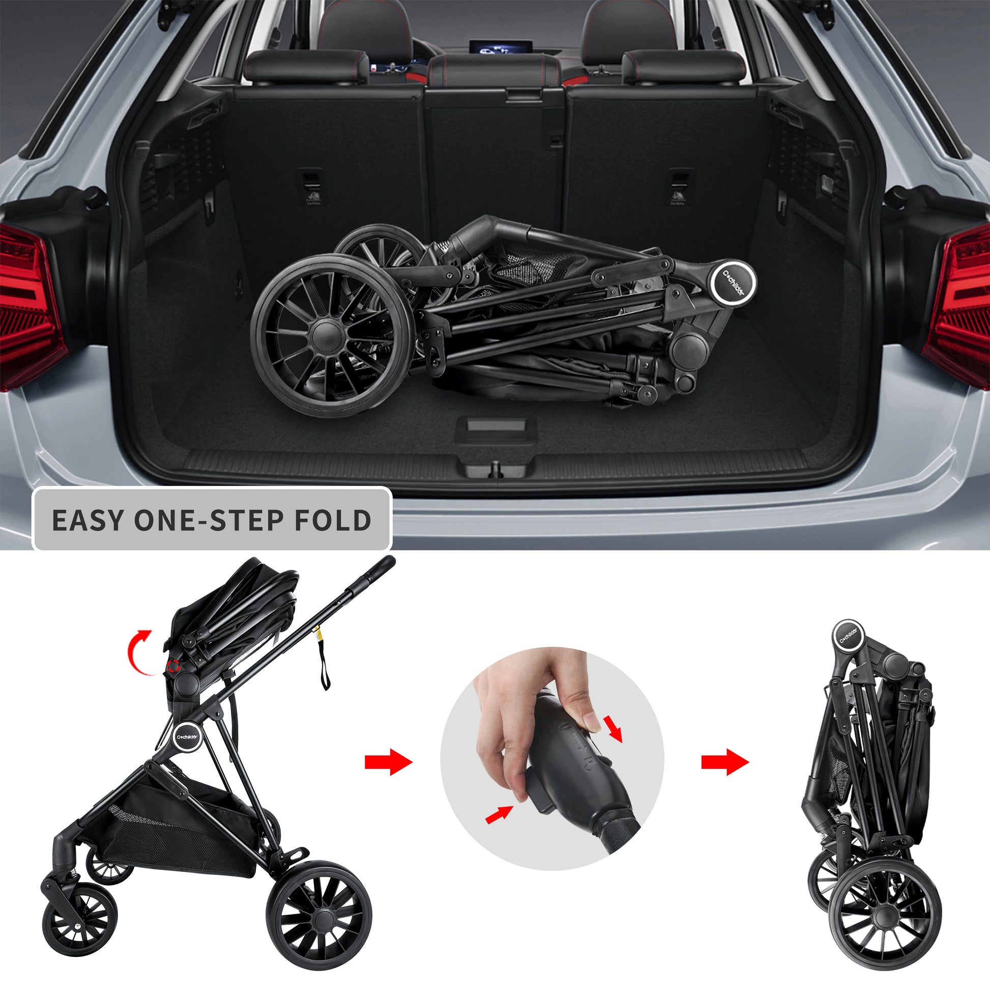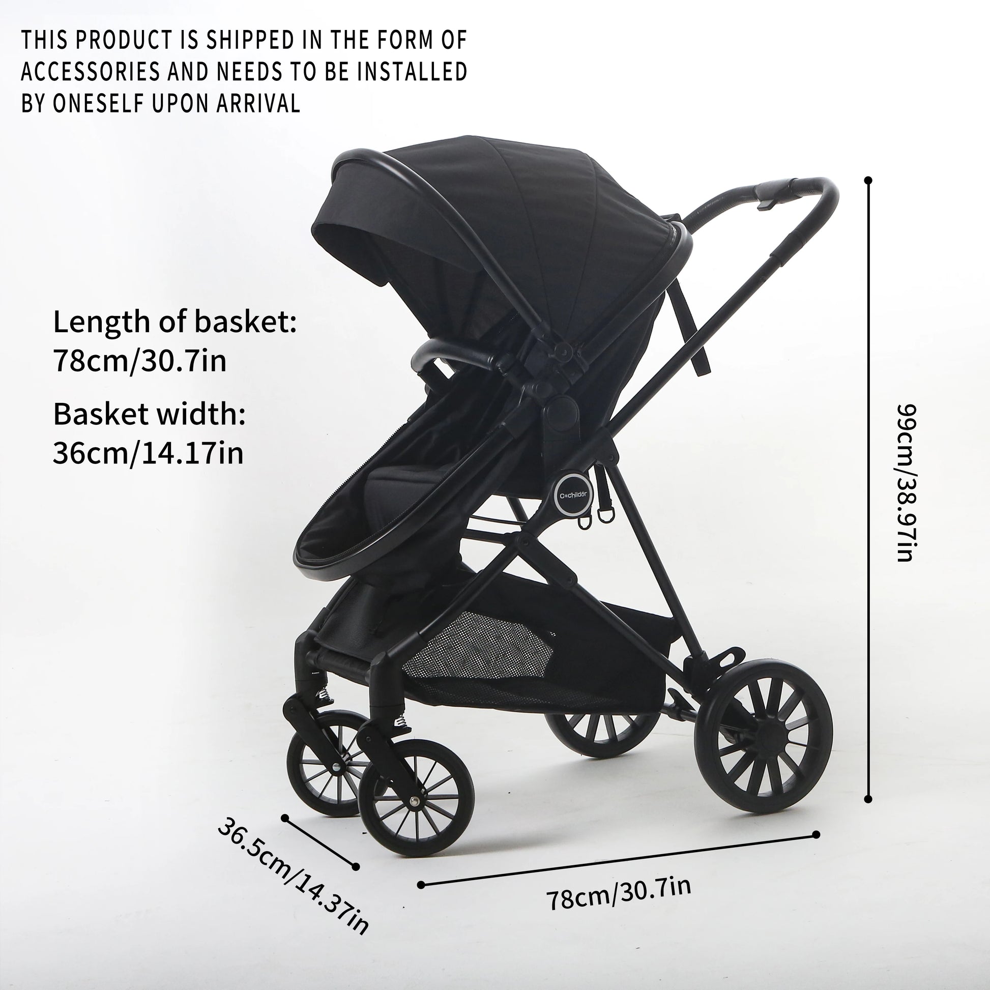 2-in-1 Baby Stroller,Folding High Landscape Pram Pushchair, Adjustable Handler, Extra Storage, Spacious Seat, Removable Footmuff