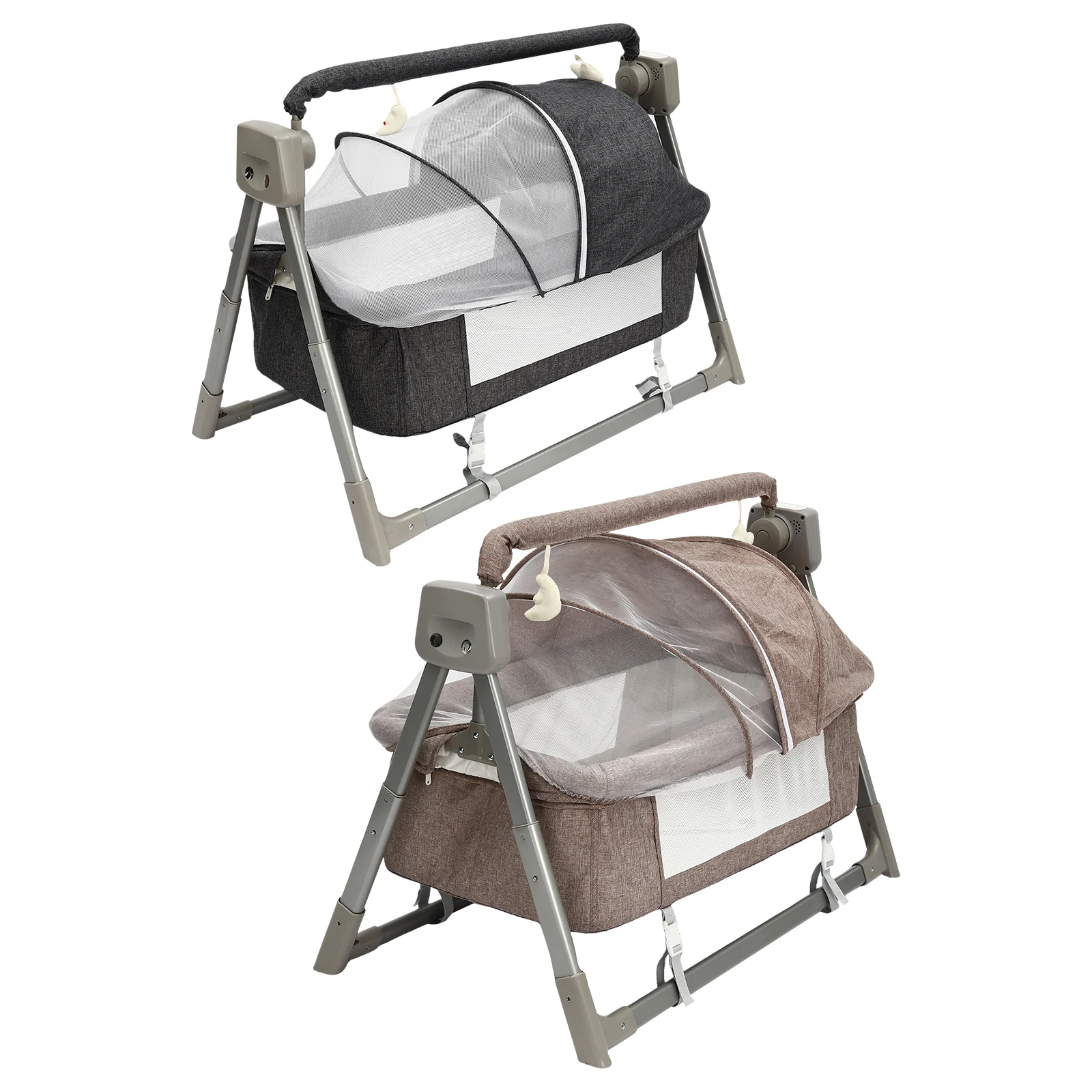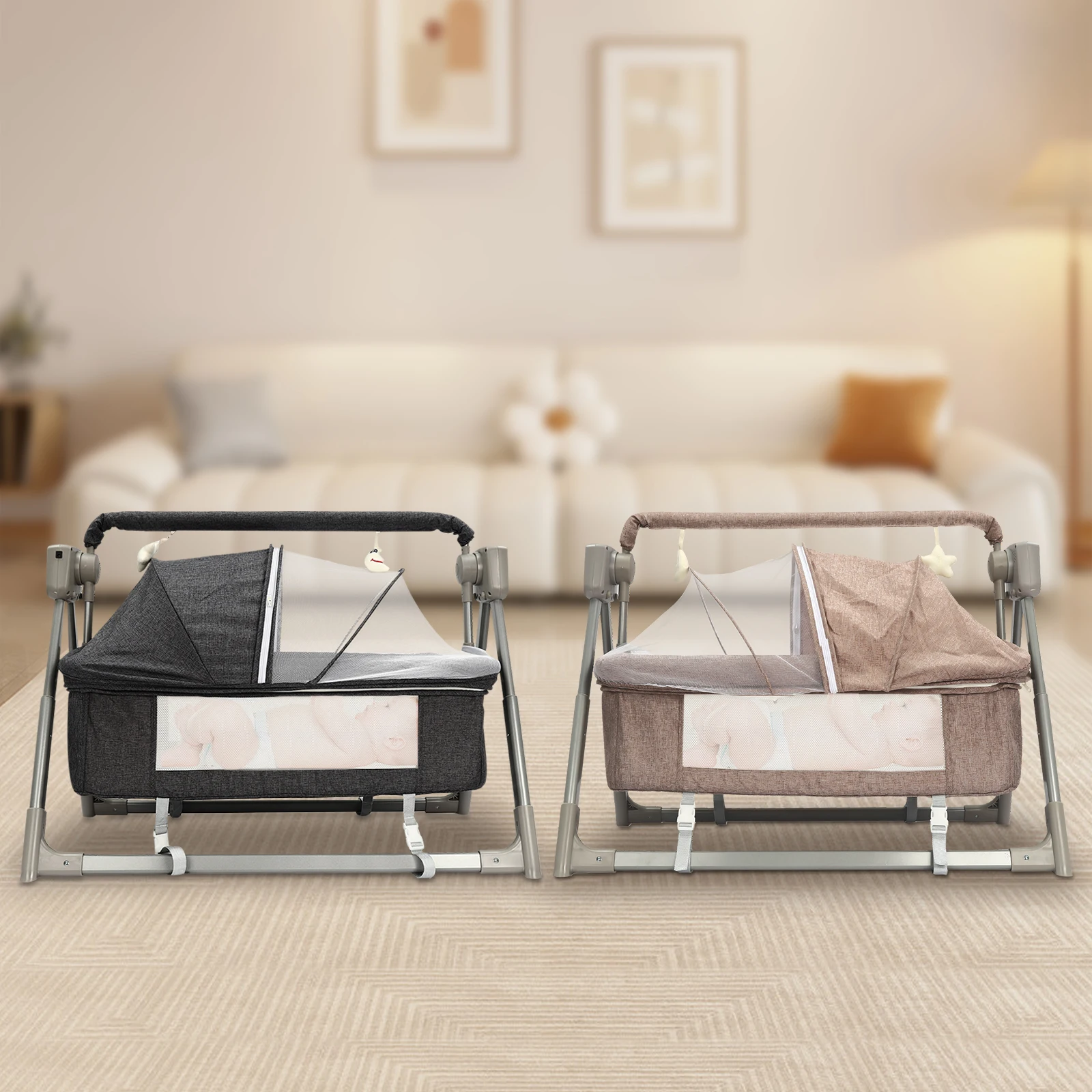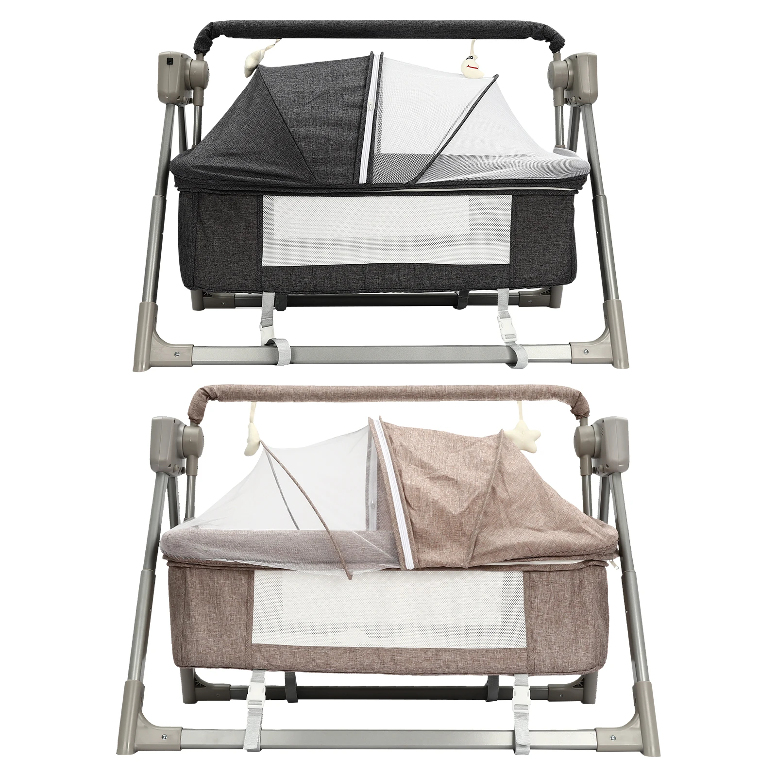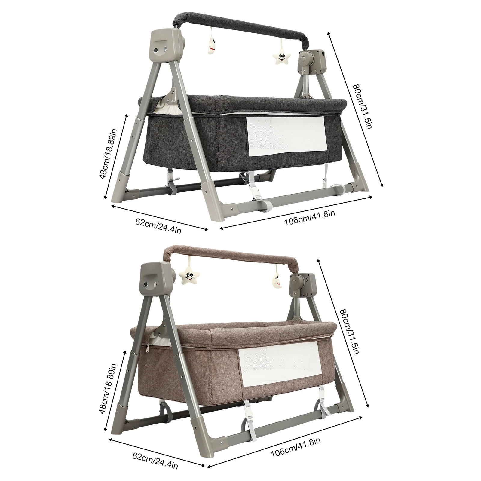 5 Gears Electric Cradle Baby Swing Bed, Baby Bassinet, Automatic Rocking Recliner Crib Basket Dark Gray/Khaki)