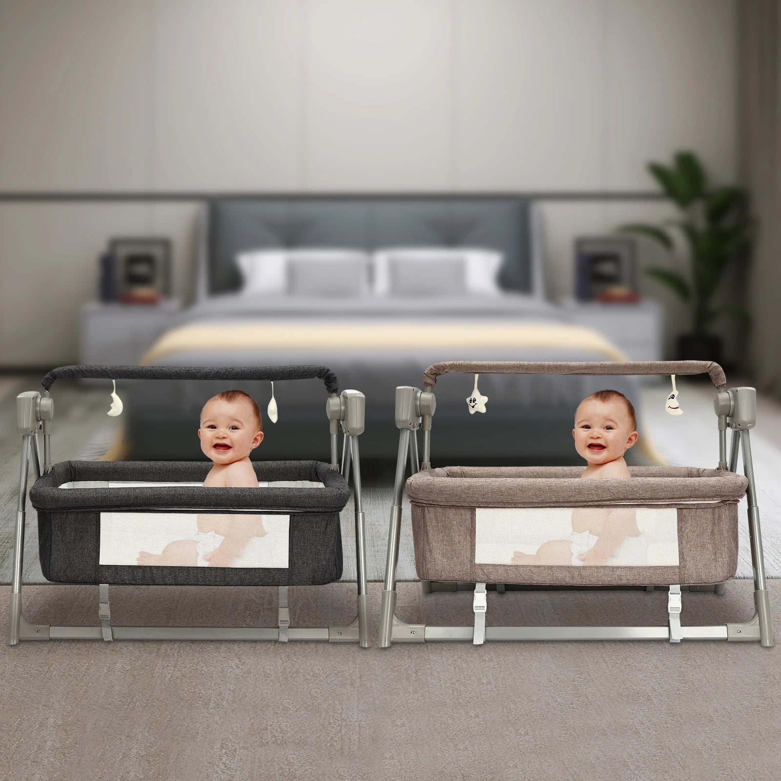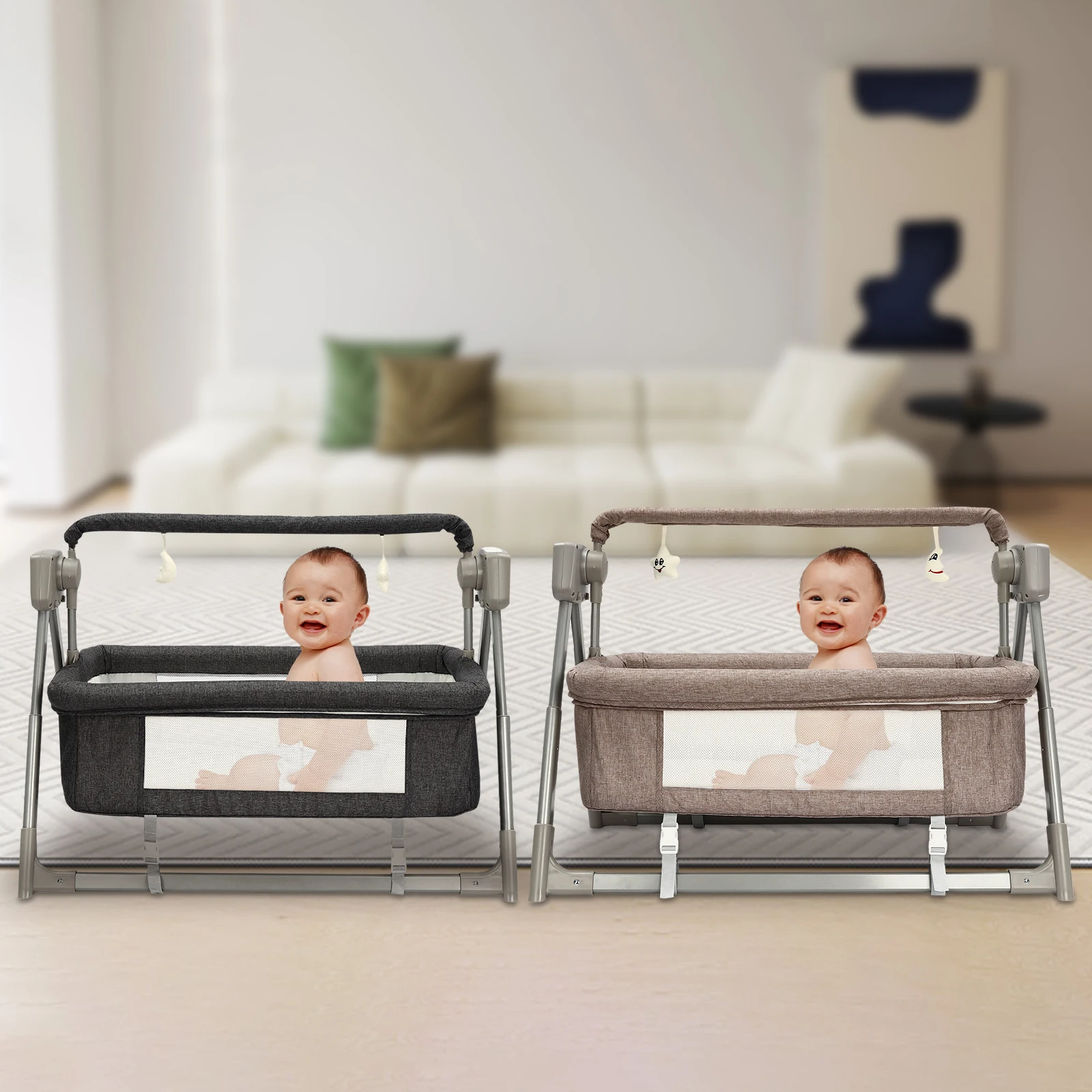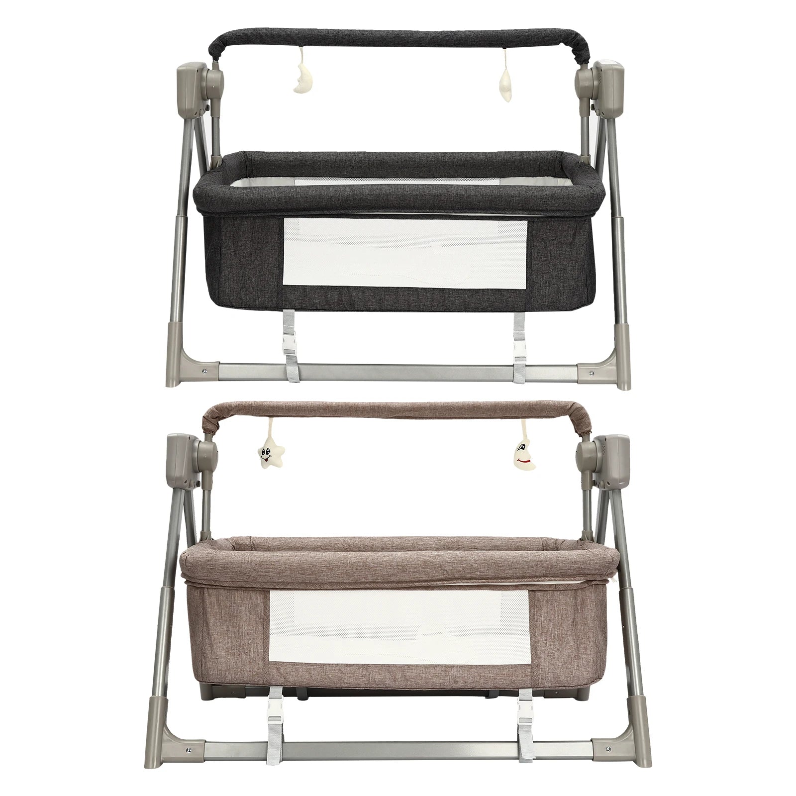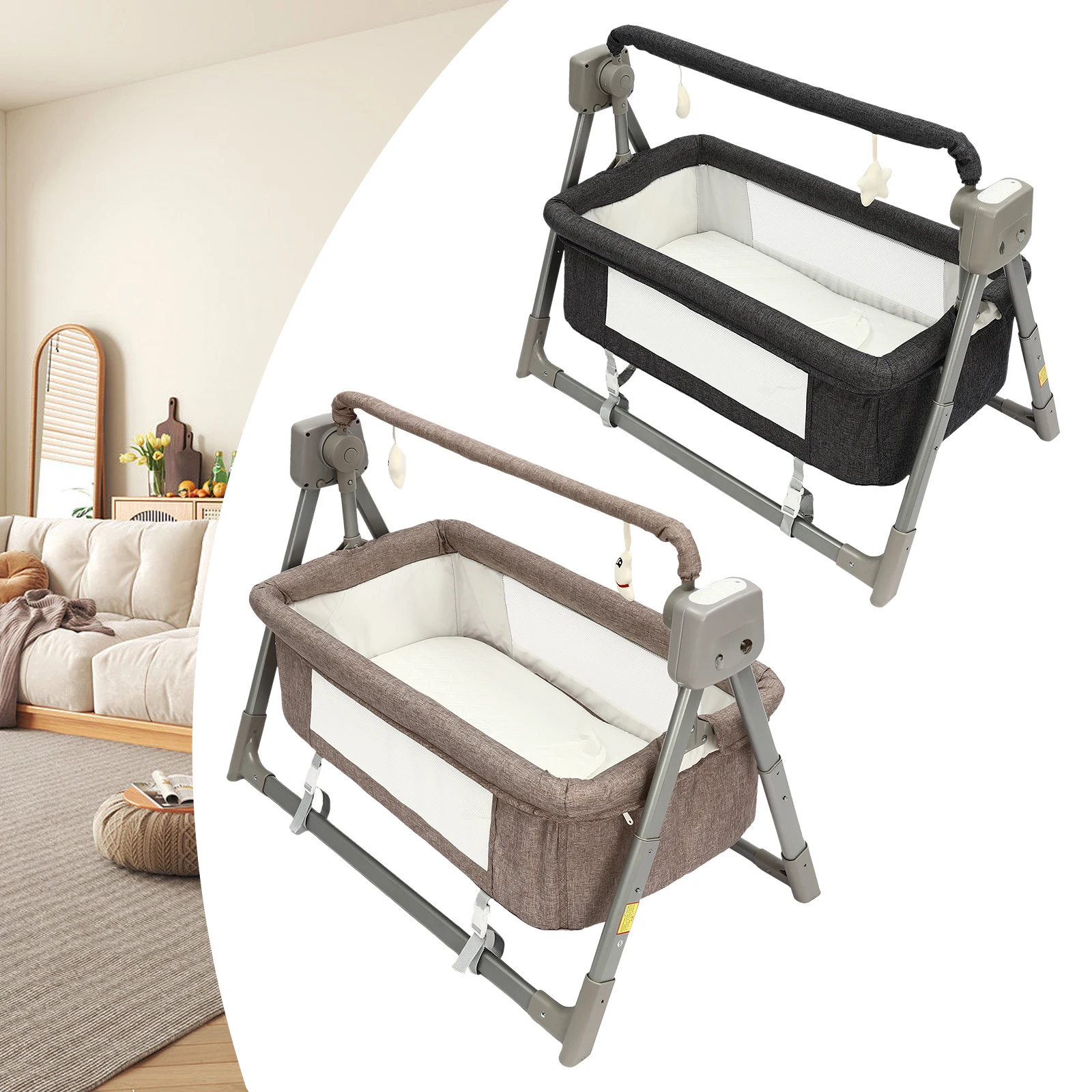 5 Gears Electric Cradle Baby Swing Bed, Baby Bassinet, Automatic Rocking Recliner Crib Basket Dark Gray/Khaki)