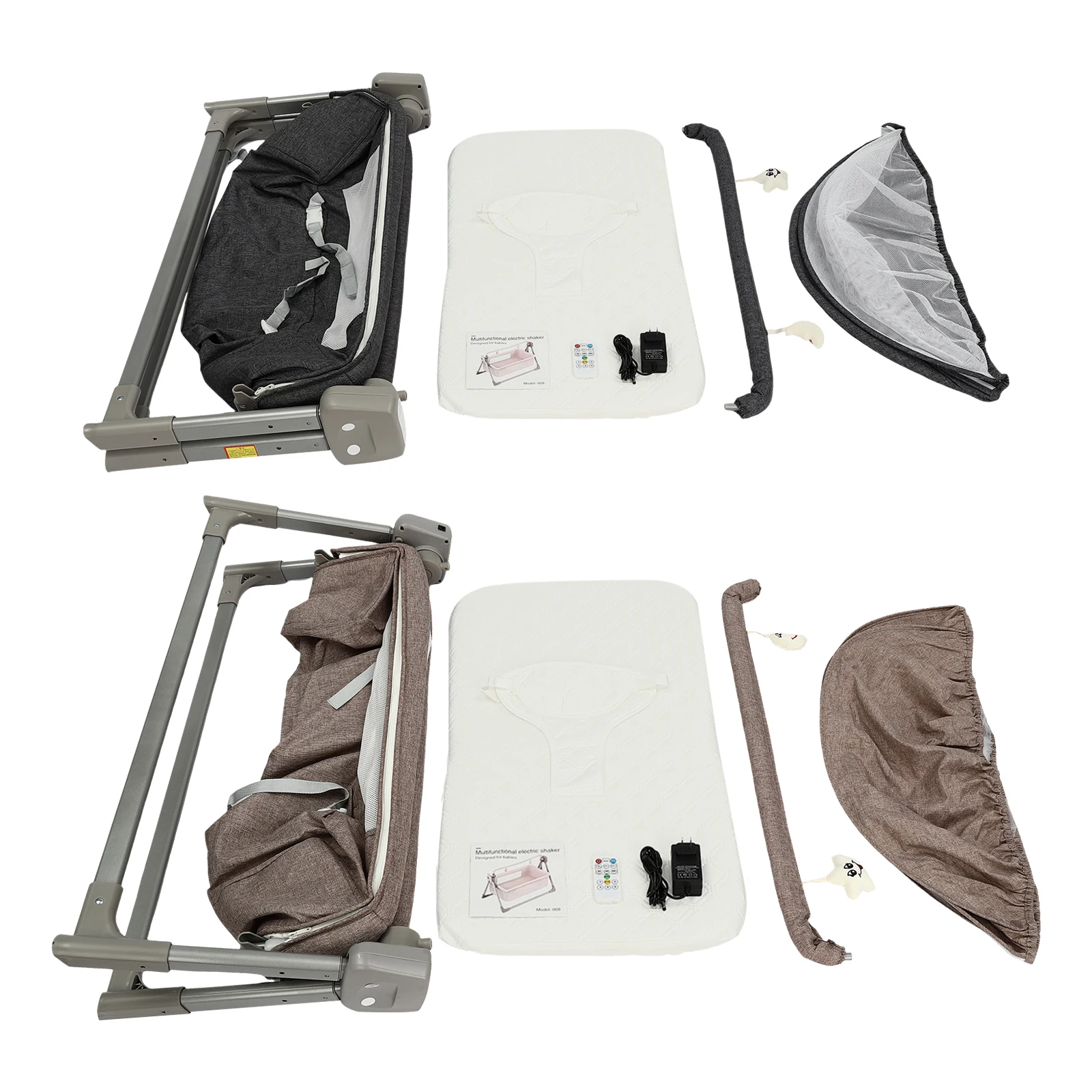 Rocking Chair Electric Cradle Baby Swing Bed, Automatic Rocking Recliner Crib Basket, Music Remoter Control Rocker Sleeping Basket Cot (Color: Dark Gray/Khaki)