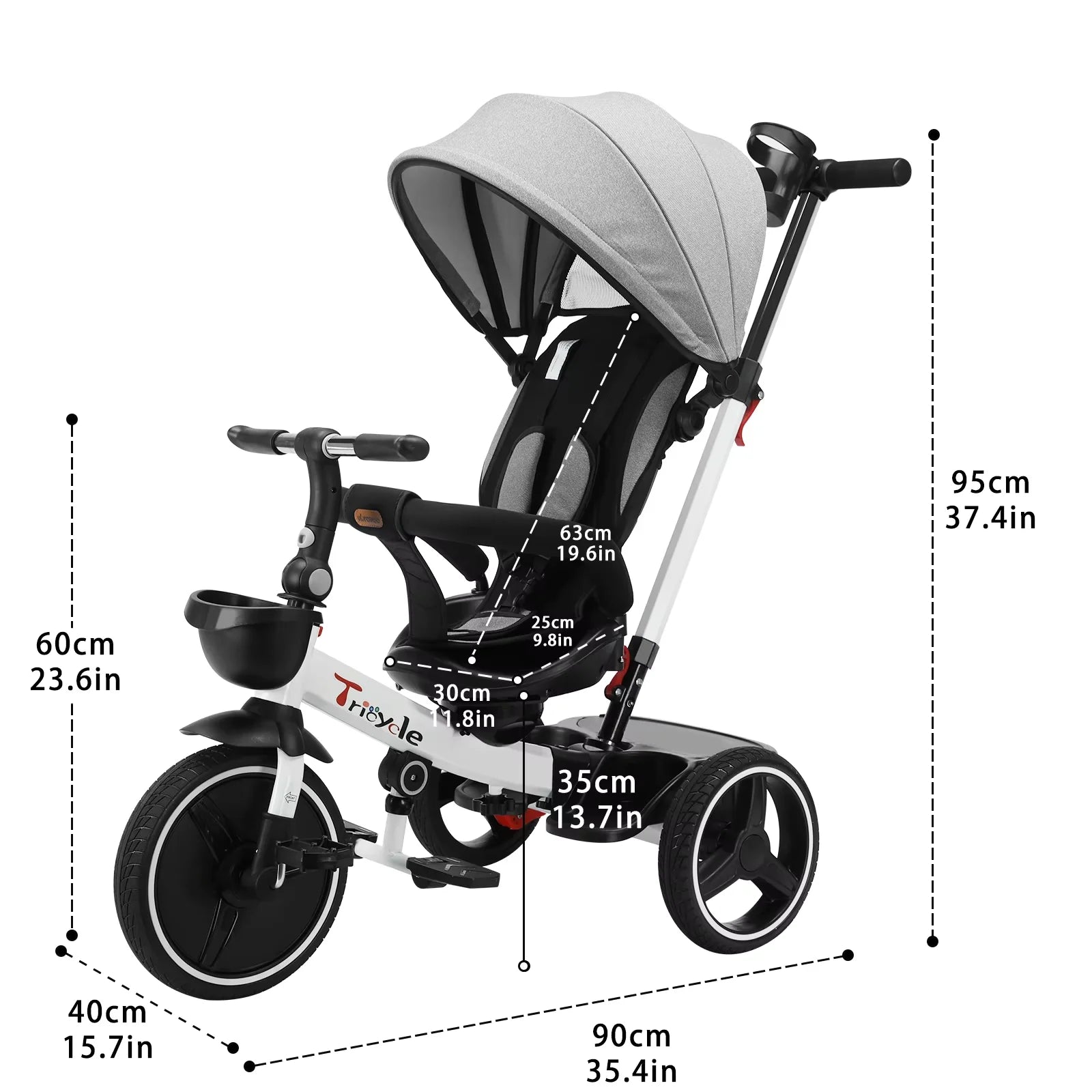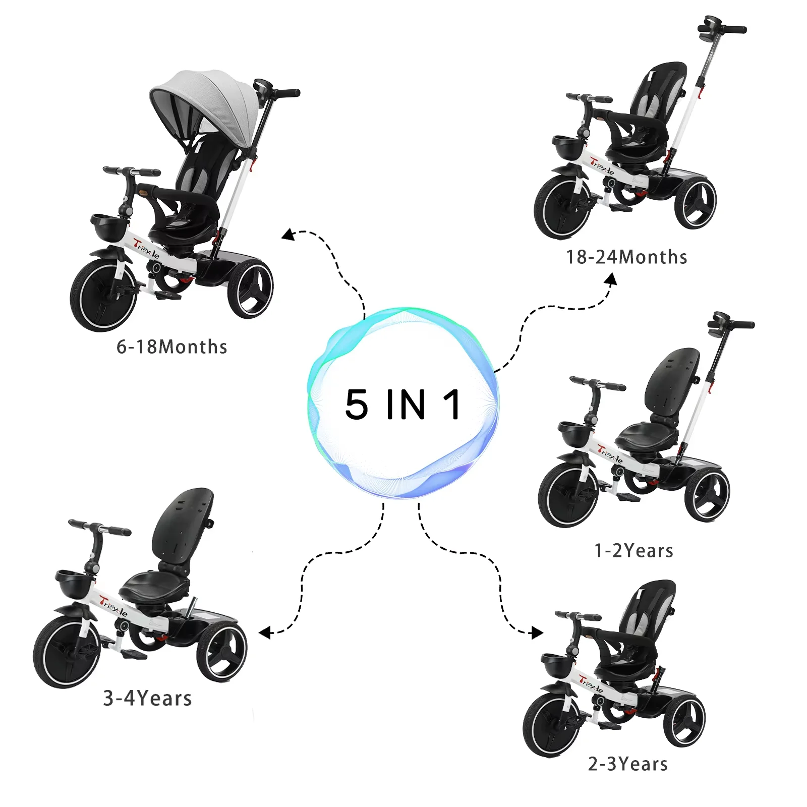 6-in-1 Kids' Tricycle with Teether, Safety Belt & Sunshade - Ride-On Toy for 1-6 Years (Gray/White)