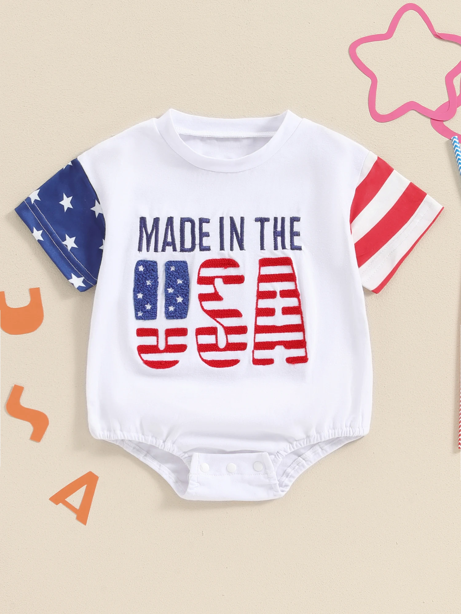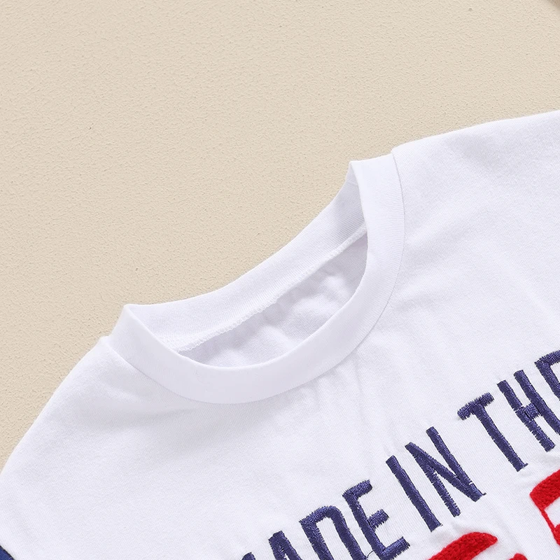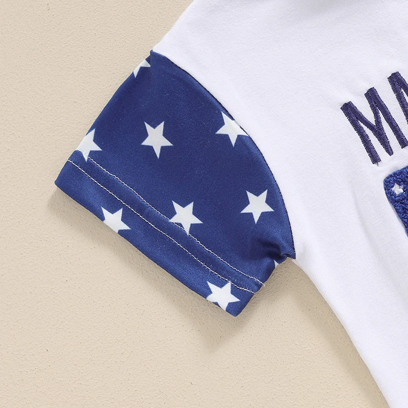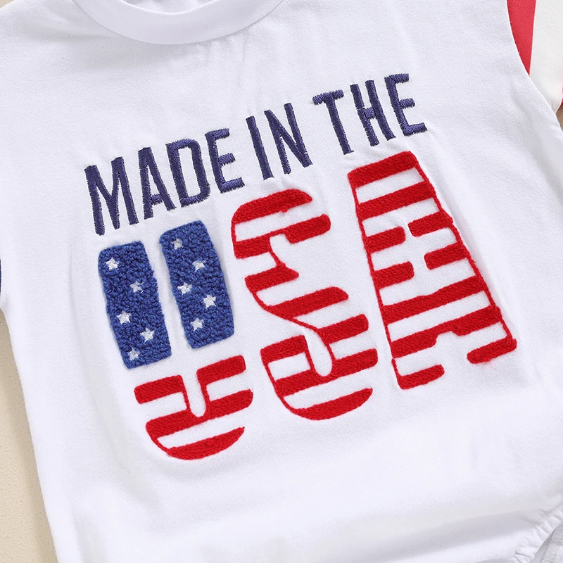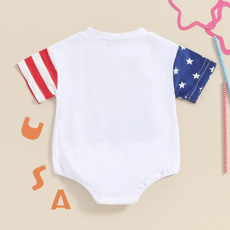Baby Boy and Girl Romper Casual Letter Embroidery Striped Short Sleeve 4th of July Jumpsuit Toddler Summer Clothes