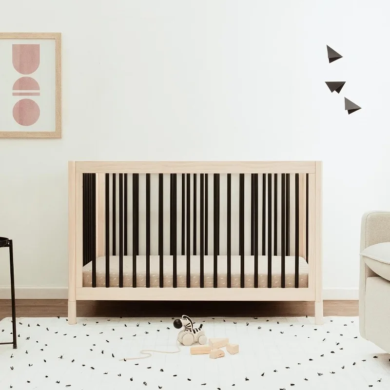 Crib with Toddler Bed Conversion in Washed Natural and Black, Greenguard Gold Certified