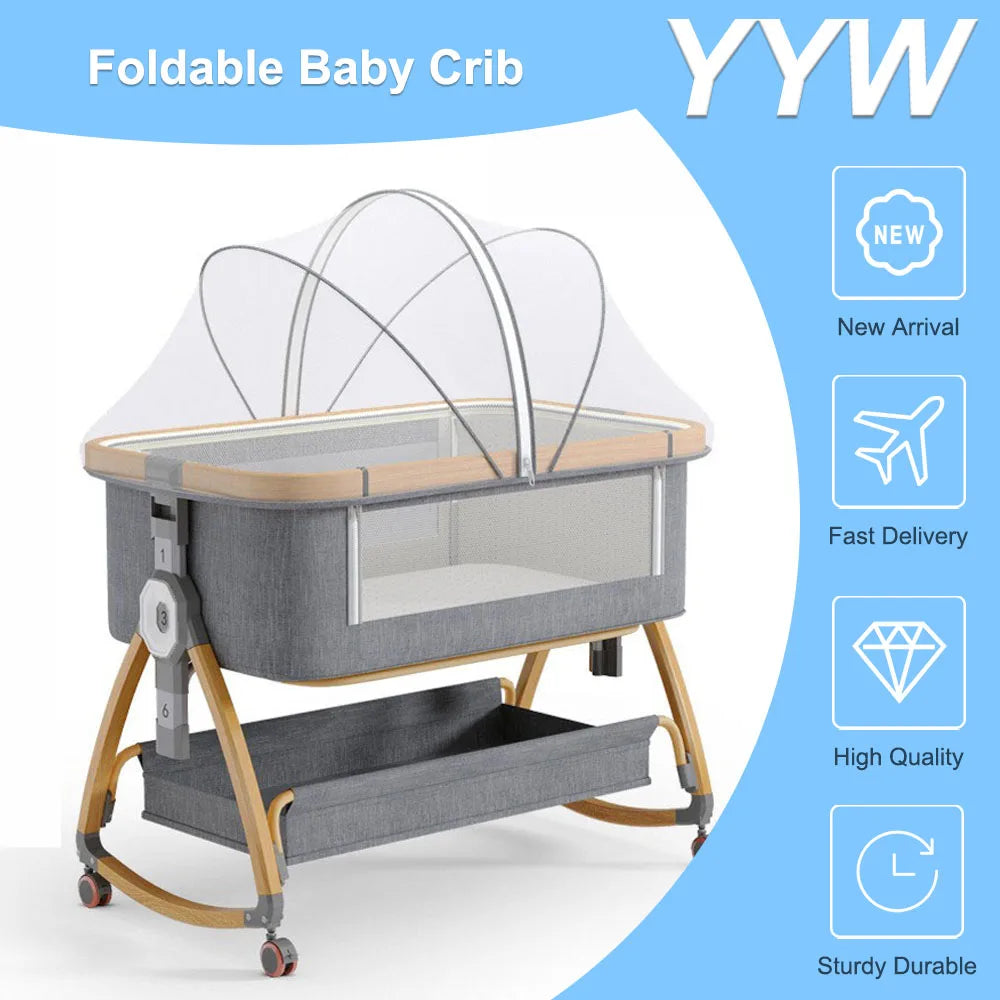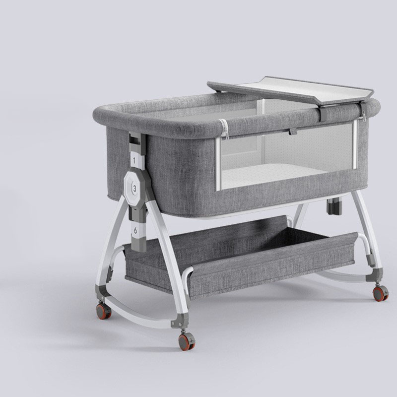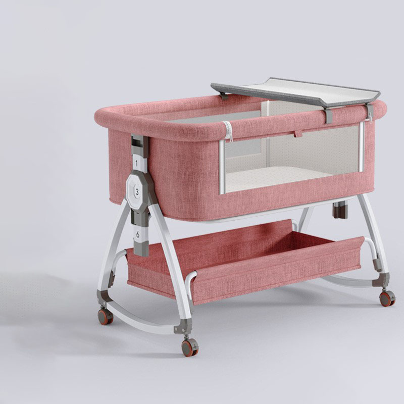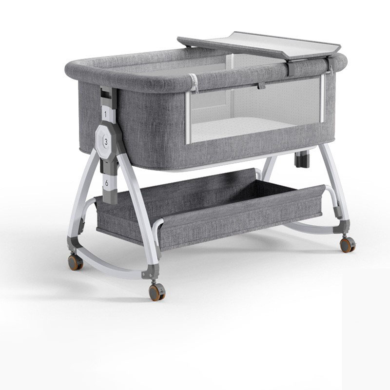 High Carbon Steel Aluminium Alloy Foldable Baby Crib With Rollers Movable With Diapers Toys Storage Tray Baby Sleep Comfort Bed