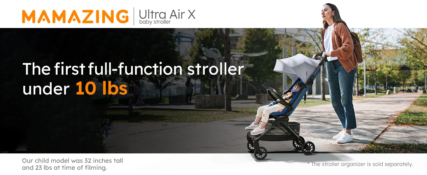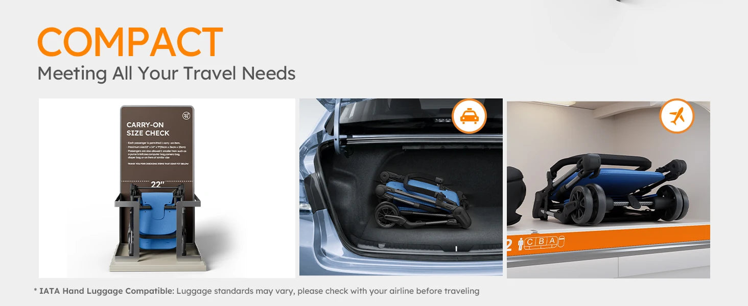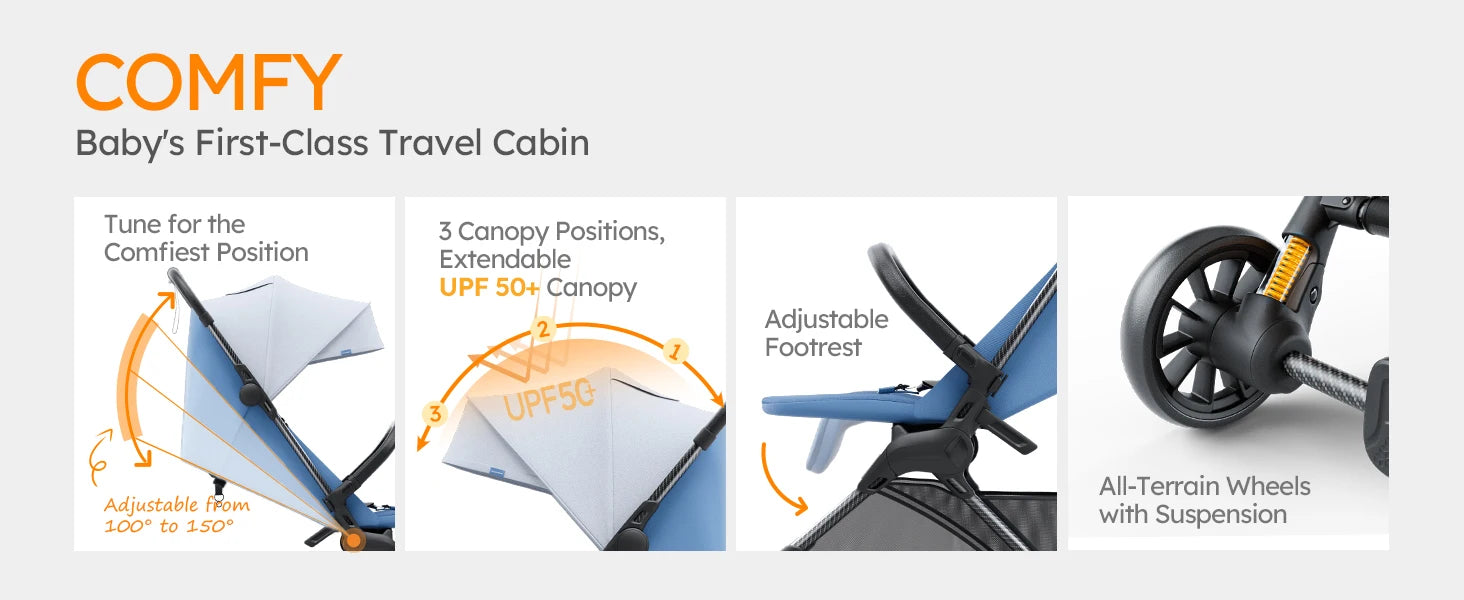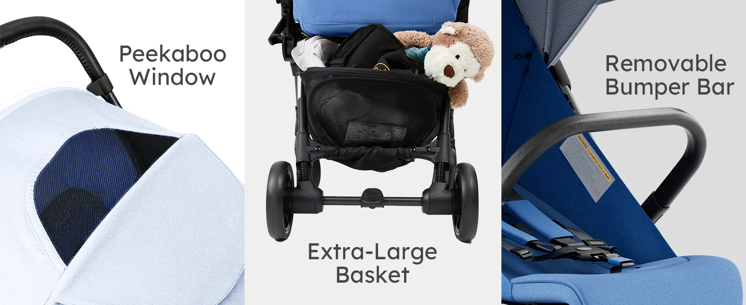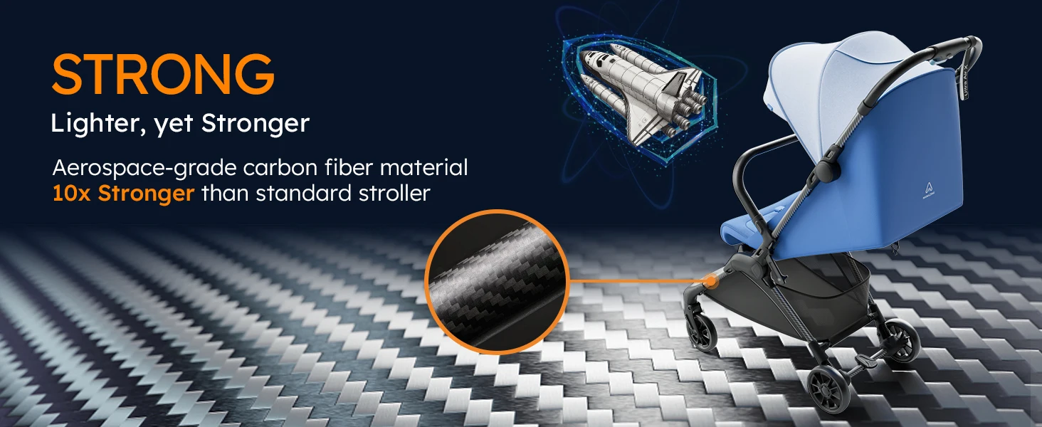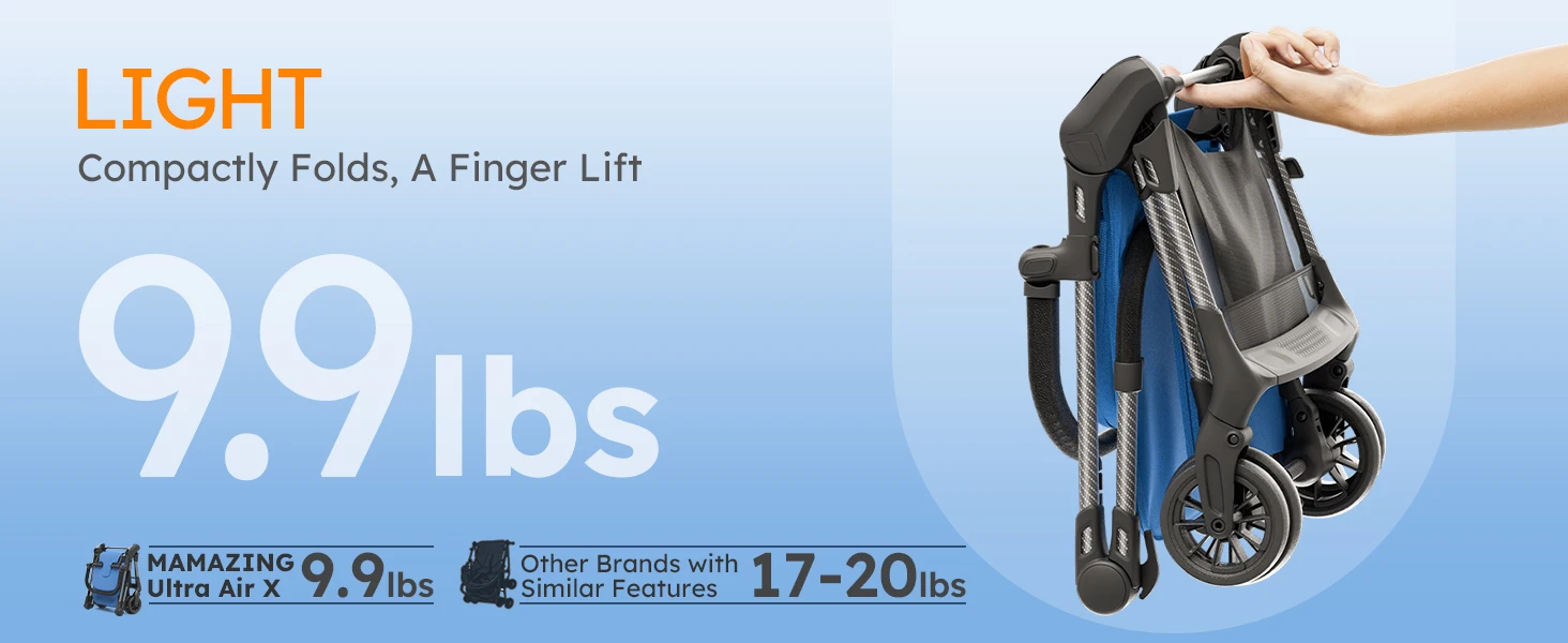 Ultra Air X Portable Baby Stroller 9.9lbs Carbon Fiber Frame with Safety Belt & Storage (BLUE)